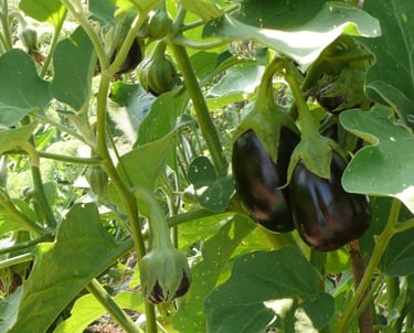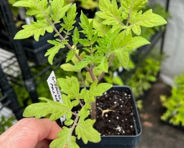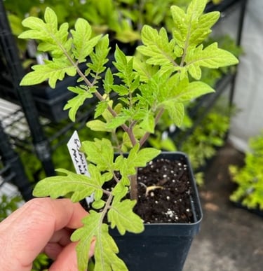 We sell open pollinated heirloom varieties of tomato, pepper and eggplant plants in 4" containers..